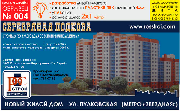 Паспорт стройки, образец № 4 (пластик 4 мм, 2000х1000 cм) в Кызыле купить