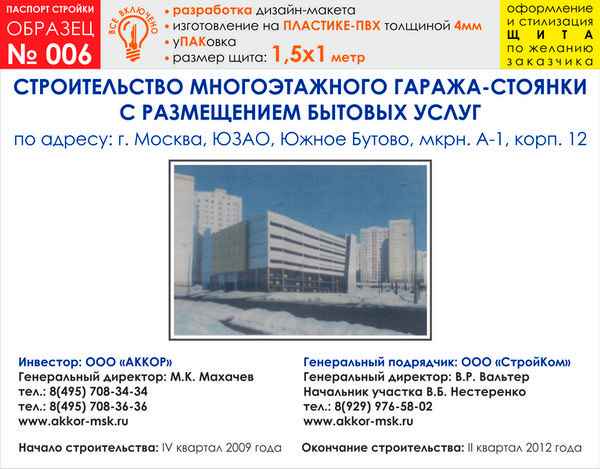Паспорт стройки, образец № 6 (пластик 4 мм, 1500х1000 cм) в Кызыле купить