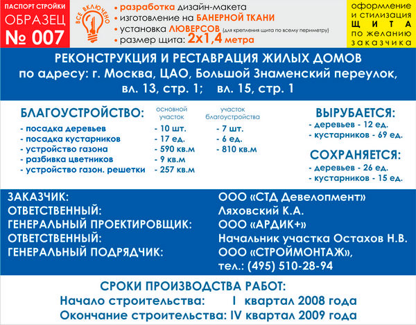Паспорт стройки, образец № 7 (баннерная ткань, 2000х1400 cм) в Кызыле купить