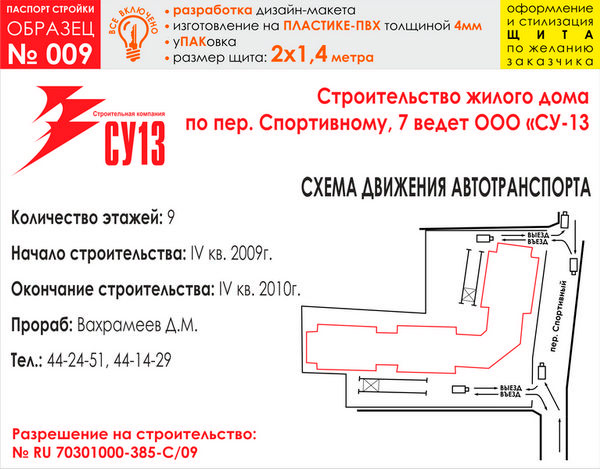 Паспорт стройки, образец № 9 (пластик 4 мм, 2000х1400 cм) в Кызыле купить