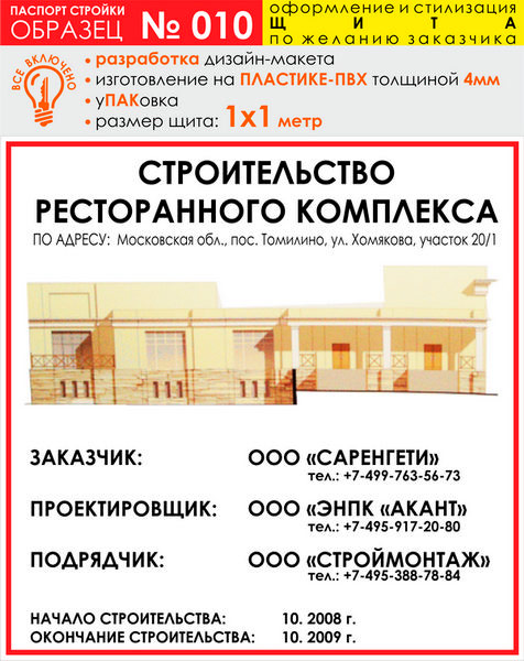 Паспорт стройки, образец № 10 (пластик 4 мм, 1000х1000 cм) в Кызыле купить