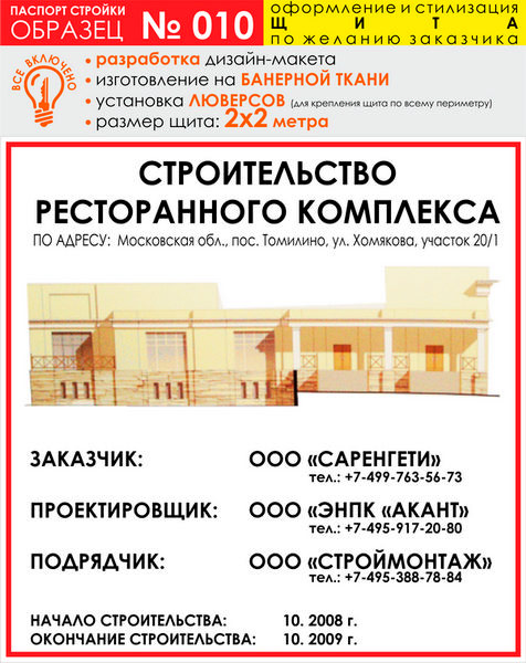 Паспорт стройки, образец № 10 (баннерная ткань, 2000х2000 cм) в Кызыле купить
