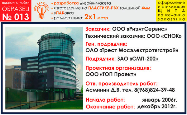 Паспорт стройки, образец № 13 (пластик 4 мм, 2000х1000 cм) в Кызыле купить