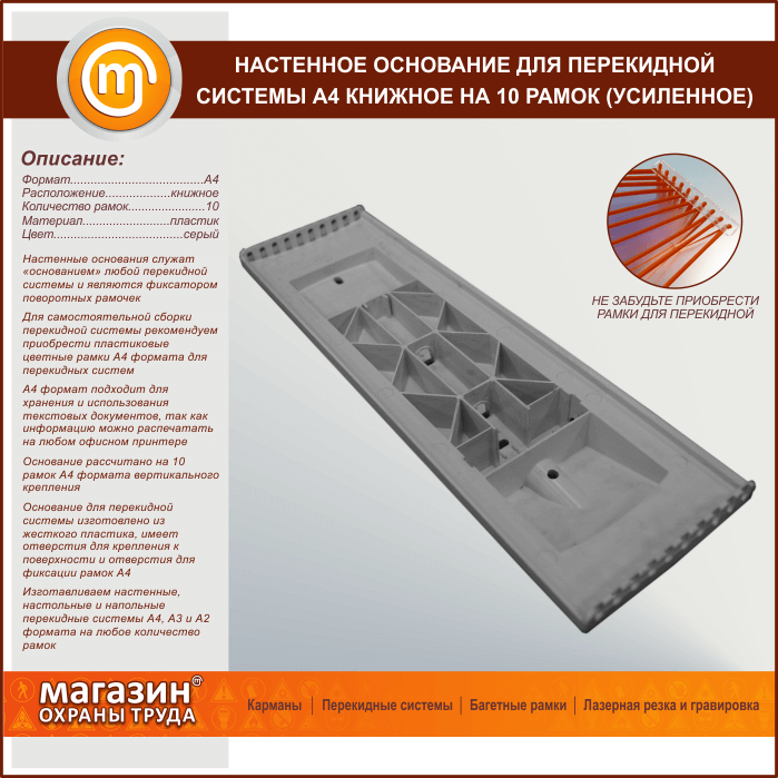 Настенное основание для перекидной системы А4 книжное на 10 рамок (усиленное) в Кызыле купить