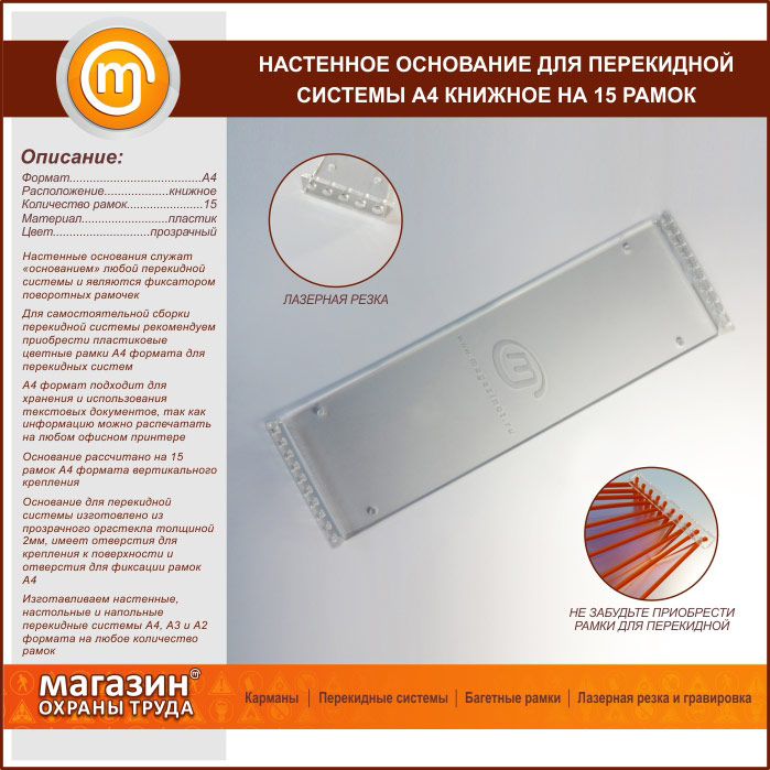 Настенное основание для перекидной системы А4 книжное на 15 рамок (оргстекло) в Кызыле купить