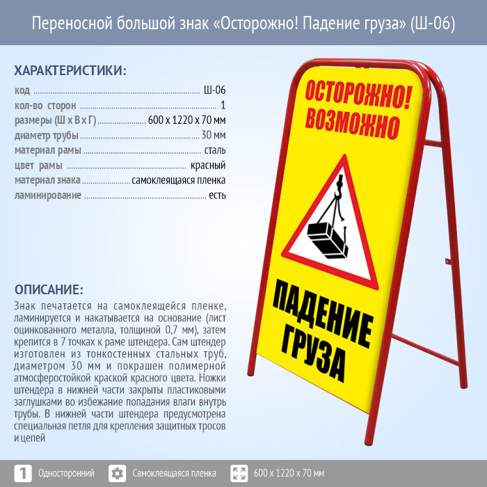 Переносной знак «Осторожно! Падение груза» (Ш-06)