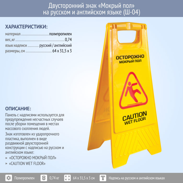 Знак «Мокрый пол» на русском и английском языке (Ш-04) в Кызыле купить
