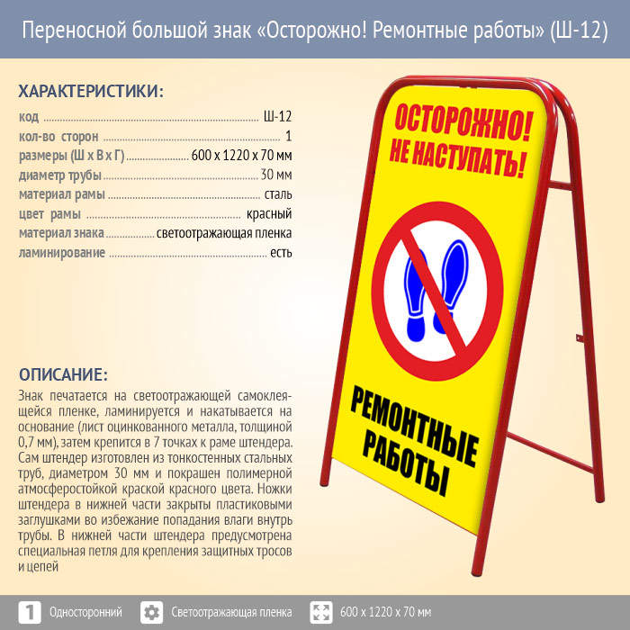 Переносной большой знак «Осторожно! Ремонтные работы» (Ш-12, односторонний, светоотражающая пленка) в Кызыле купить