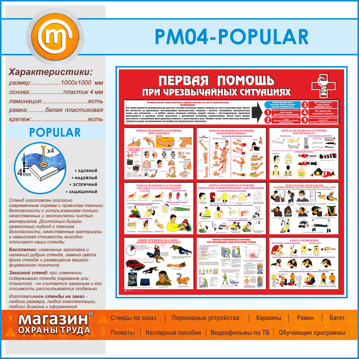 Стенд «Первая помощь при чрезвычайных ситуациях» (PM-04-POPULAR) в Кызыле купить