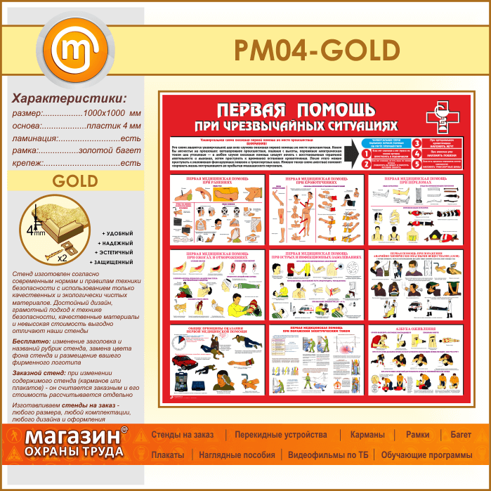 Стенд «Первая помощь при чрезвычайных ситуациях» (PM-04-GOLD) в Кызыле купить