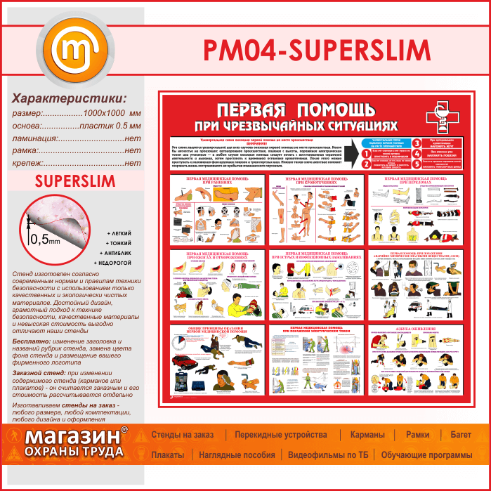 Стенд «Первая помощь при чрезвычайных ситуациях» (PM-04-SUPERSLIM) в Кызыле купить