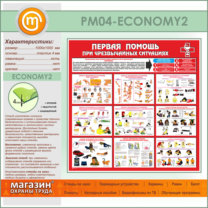 Стенд «Первая помощь при чрезвычайных ситуациях» (PM-04-ECONOMY2) в Кызыле купить