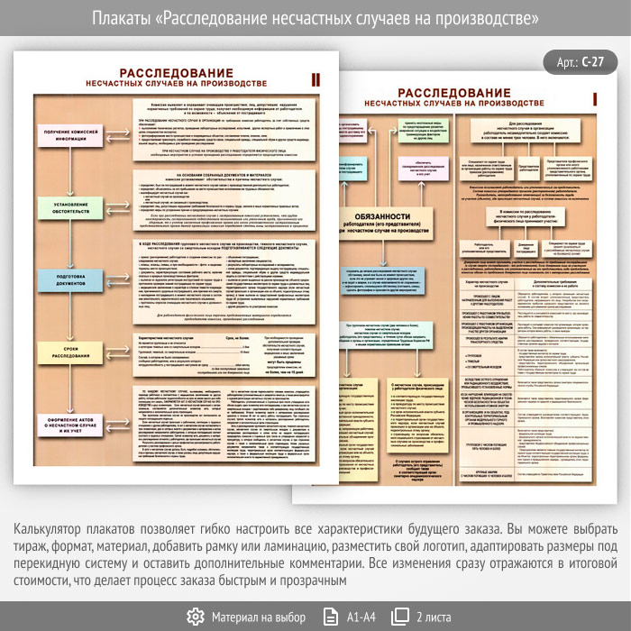 Комплект плакатов «Расследование несчастных случаев на производстве» из 2 листов – достойное качество и полезная информация по приемлемой цене