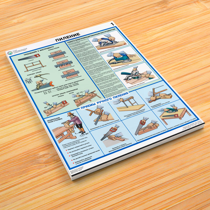 Комплект плакатов «Ручной и электрифицированный столярный инструмент» из 3 листов содержит информацию о видах ручного и электрифицированного столярного инструмента, требованиях к нему, а также безопасных приемах выполнения работ