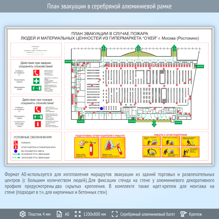 План эвакуации в серебряной алюминиевой рамке (А0 формат) в Кызыле купить