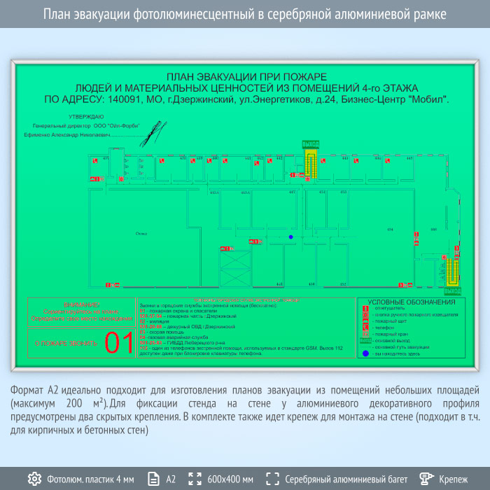 План эвакуации фотолюминесцентный в серебряной алюминиевой рамке (А2 формат) в Кызыле купить