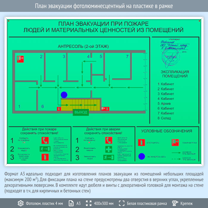 План эвакуации фотолюминесцентный на пластике в рамке (А3 формат) в Кызыле купить