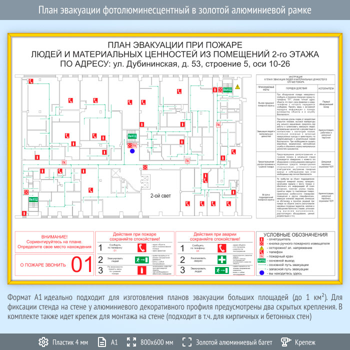 План эвакуации в золотой алюминиевой рамке (А1 формат) в Кызыле купить