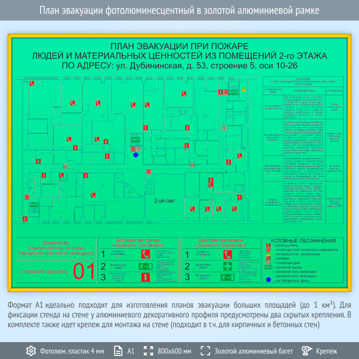 План эвакуации фотолюминесцентный в золотой алюминиевой рамке (А1 формат) в Кызыле купить