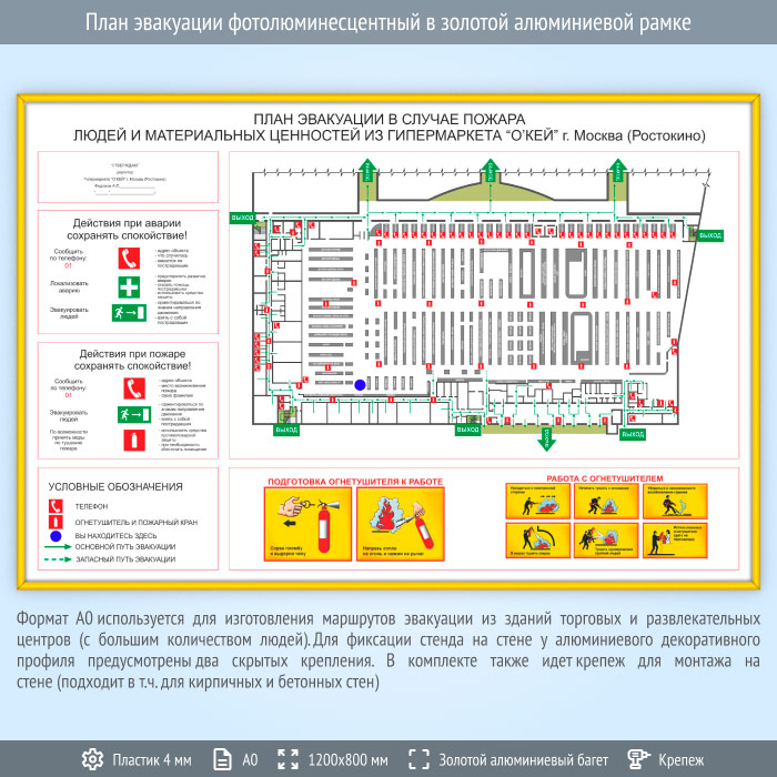 План эвакуации в золотой алюминиевой рамке (А0 формат) в Кызыле купить