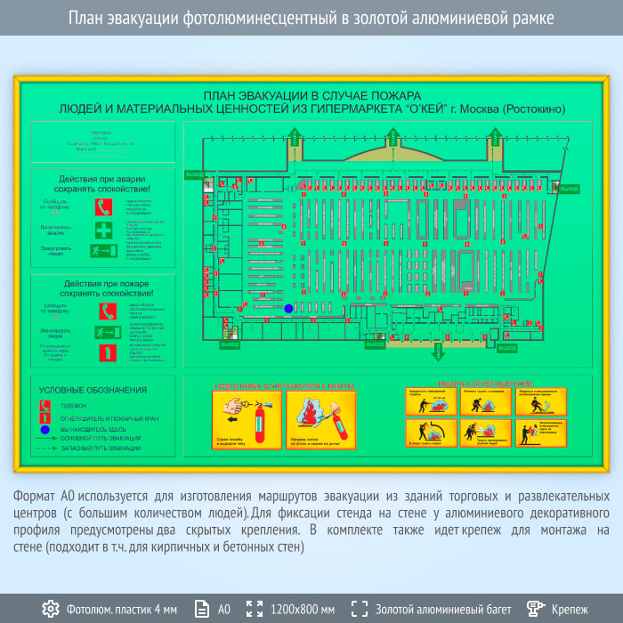 План эвакуации фотолюминесцентный в золотой алюминиевой рамке (А0 формат) в Кызыле купить
