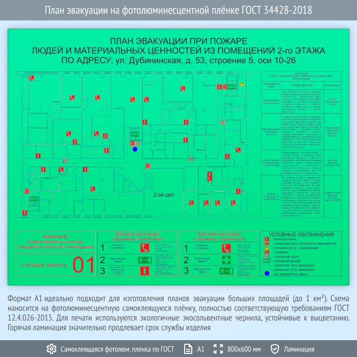 План эвакуации на фотолюминесцентной плёнке ГОСТ 34428-2018 (А1 формат) в Кызыле купить