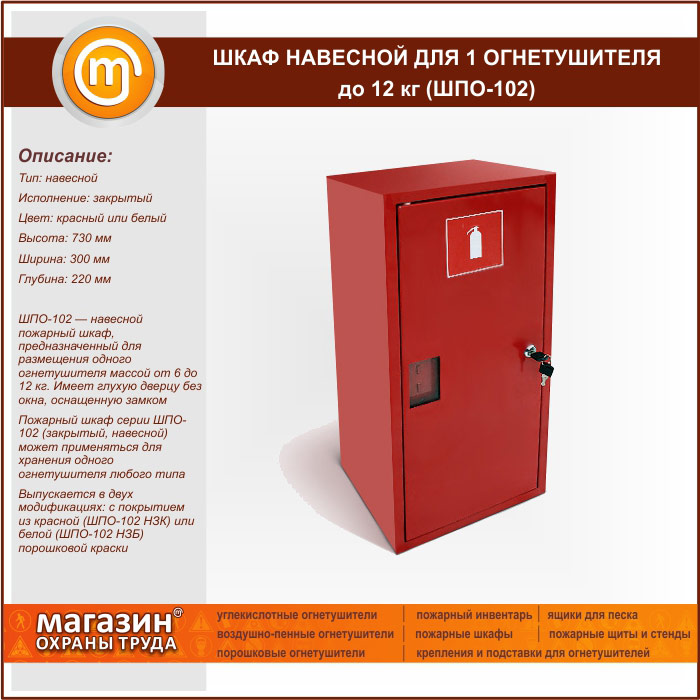 Шкаф пожарный ШПО-102 навесной для 1 огнетушителя до 12 кг в Кызыле купить