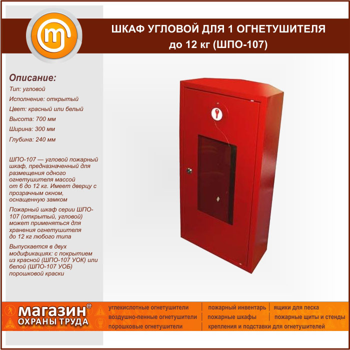 Шкаф пожарный ШПО-107 угловой для 1 огнетушителя до 12 кг в Кызыле купить