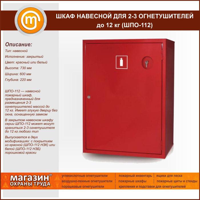 Шкаф пожарный ШПО-112 навесной для 2-3 огнетушителей до 12 кг в Кызыле купить