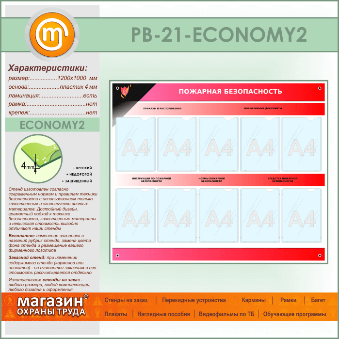 Стенд «Пожарная безопасность» с 10 карманами (PB-21-ECONOMY2) в Кызыле купить