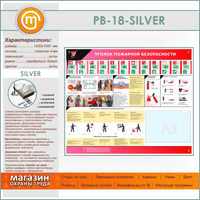 Стенд «Уголок пожарной безопасности» с карманом А3 формата (PB-18-SILVER) в Кызыле купить