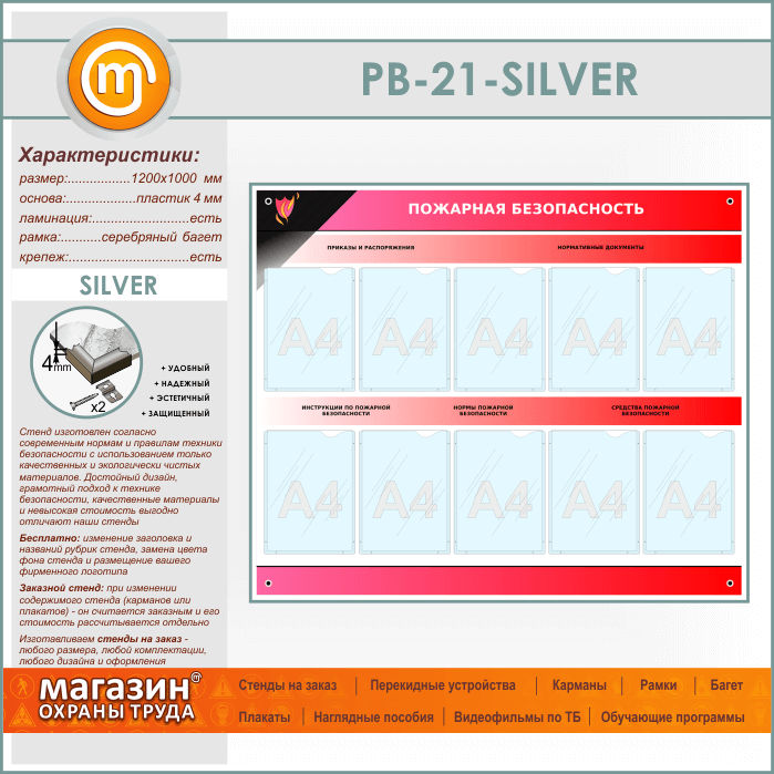 Стенд «Пожарная безопасность» с 10 карманами (PB-21-SILVER) в Кызыле купить