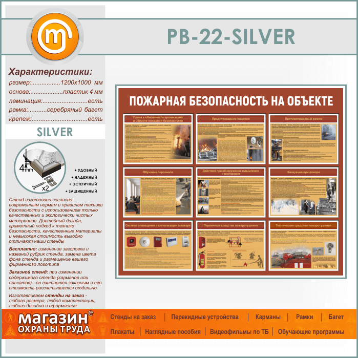 Стенд «Пожарная безопасность на объекте» (PB-22-SILVER) в Кызыле купить