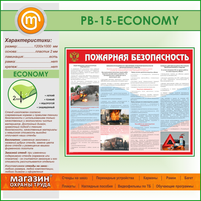 Стенд «Пожарная безопасность на автотранспорте» (PB-15-ECONOMY) в Кызыле купить
