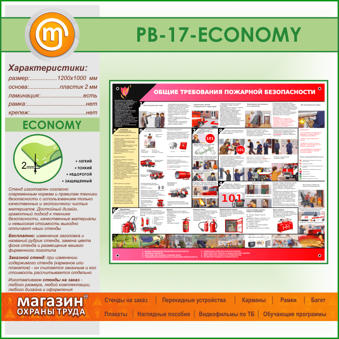 Стенд «Общие требования пожарной безопасности» (PB-17-ECONOMY) в Кызыле купить