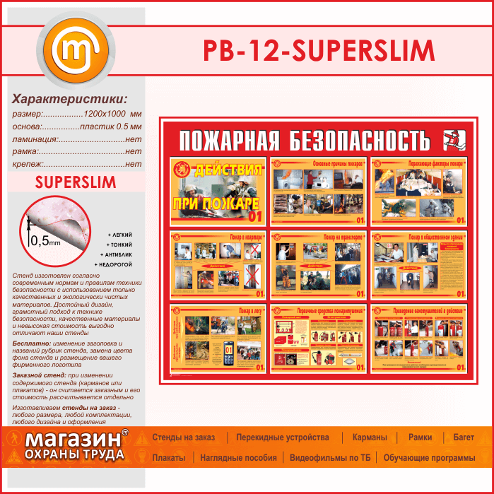 Стенд «Пожарная безопасность. Действия при пожаре» (PB-12-SUPERSLIM) в Кызыле купить