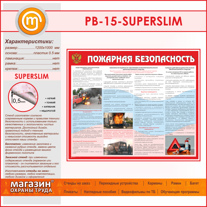 Стенд «Пожарная безопасность на автотранспорте» (PB-15-SUPERSLIM) в Кызыле купить