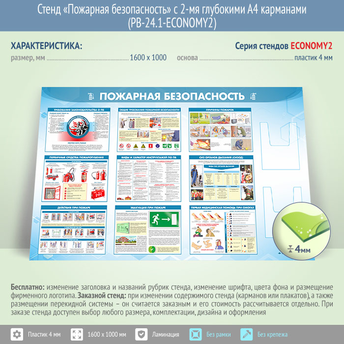 Стенд «Пожарная безопасность» с 2-мя глубокими А4 карманами (PB-24.1-ECONOMY2) в Кызыле купить