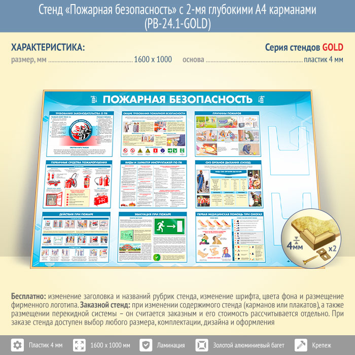 Стенд «Пожарная безопасность» с 2-мя глубокими А4 карманами (PB-24.1-GOLD) в Кызыле купить