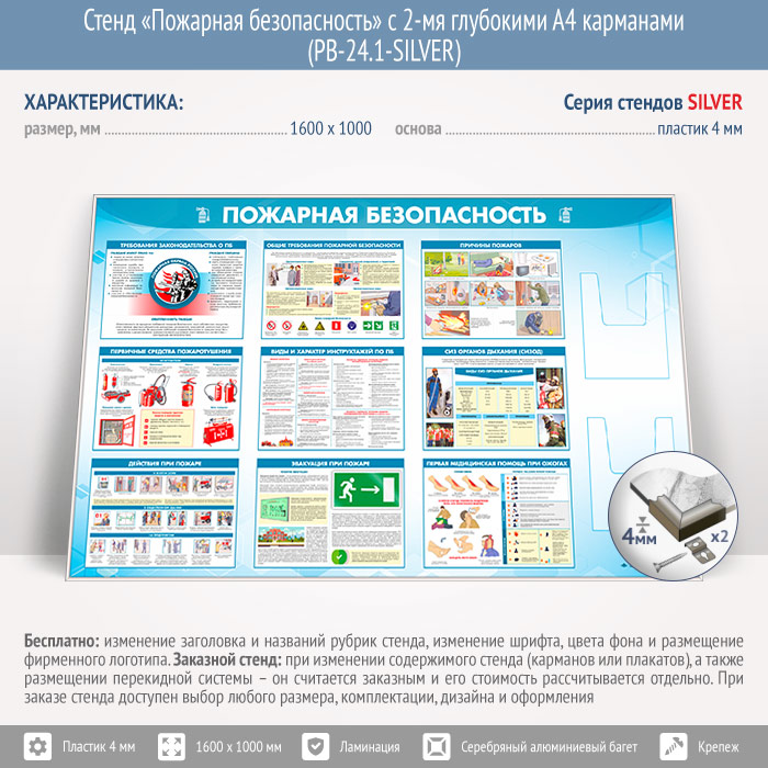 Стенд «Пожарная безопасность» с 2-мя глубокими А4 карманами (PB-24.1-SILVER) в Кызыле купить