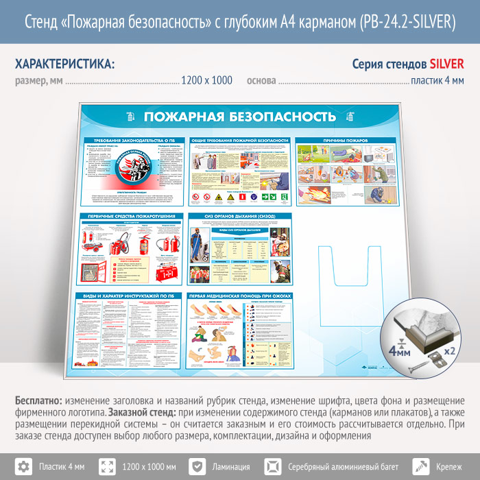 Стенд «Пожарная безопасность» с глубоким А4 карманом (PB-24.2-SILVER) в Кызыле купить