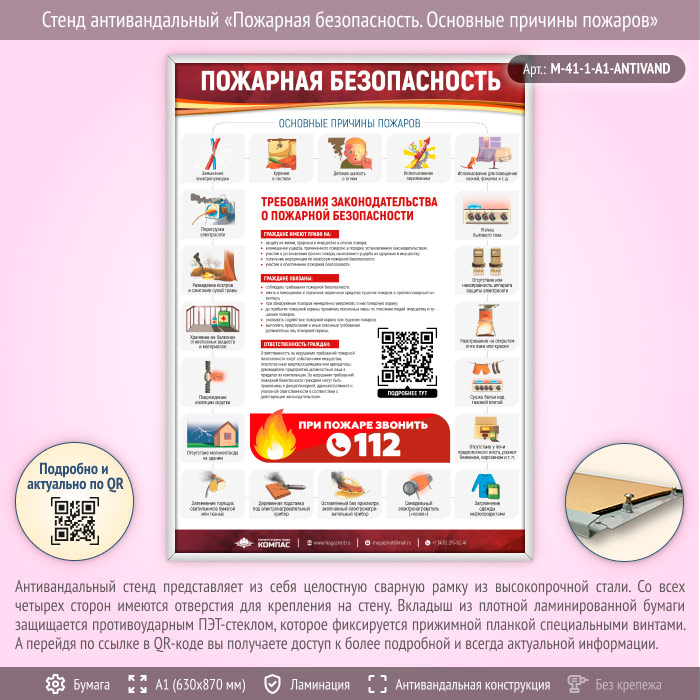 Стенд антивандальный «Пожарная безопасность. Основные причины пожаров» (M-41-1-А1-ANTIVAND) в Кызыле купить