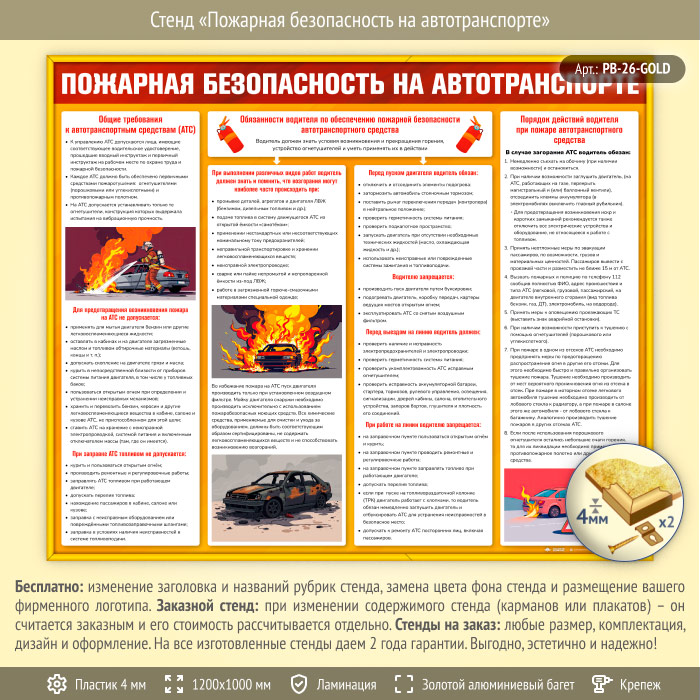 Стенд «Пожарная безопасность на автотранспорте» (PB-26-GOLD) в Кызыле купить