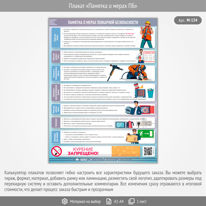 Плакат «Памятка о мерах ПБ» с QR (М-134, 1 лист) в Кызыле купить