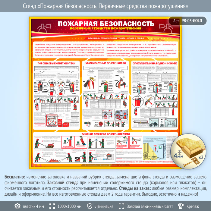 Стенд «Пожарная безопасность. Первичные средства пожаротушения» (PB-03-GOLD) в Кызыле купить