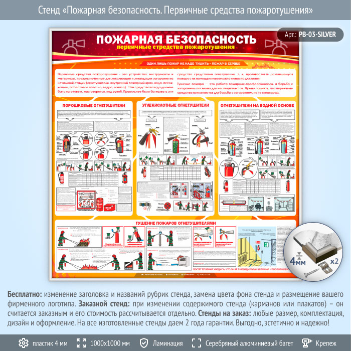 Стенд «Пожарная безопасность. Первичные средства пожаротушения» (PB-03-SILVER) в Кызыле купить