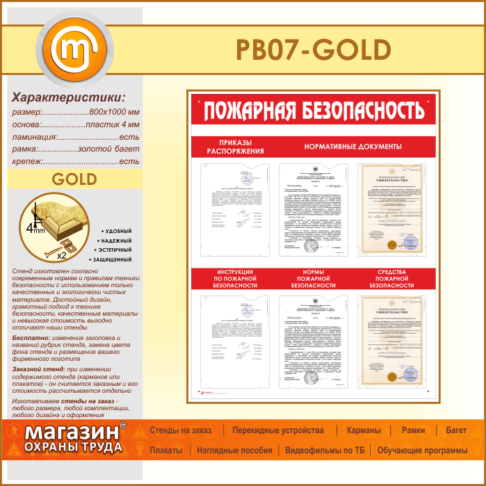 Стенд «Пожарная безопасность» с 6 карманами (PB-07-GOLD) в Кызыле купить
