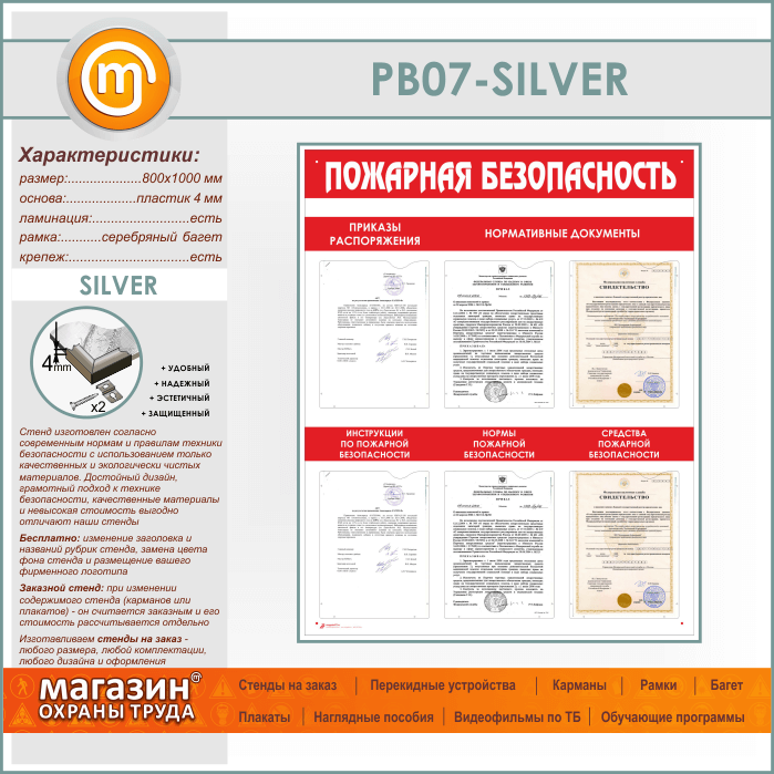 Стенд «Пожарная безопасность» с 6 карманами (PB-07-SILVER) в Кызыле купить