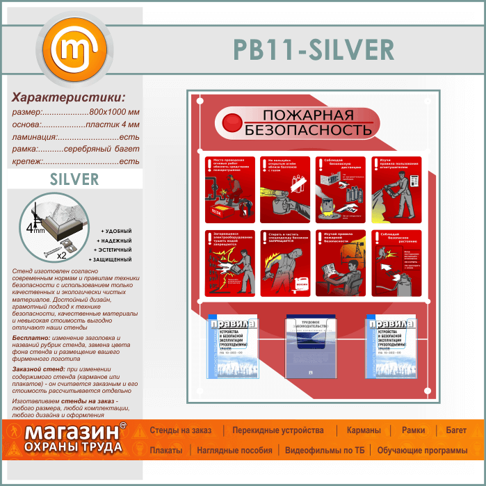 Стенд «Стенд пожарная безопасность в строительстве» с 3 объемными карманами (PB-11-SILVER) в Кызыле купить