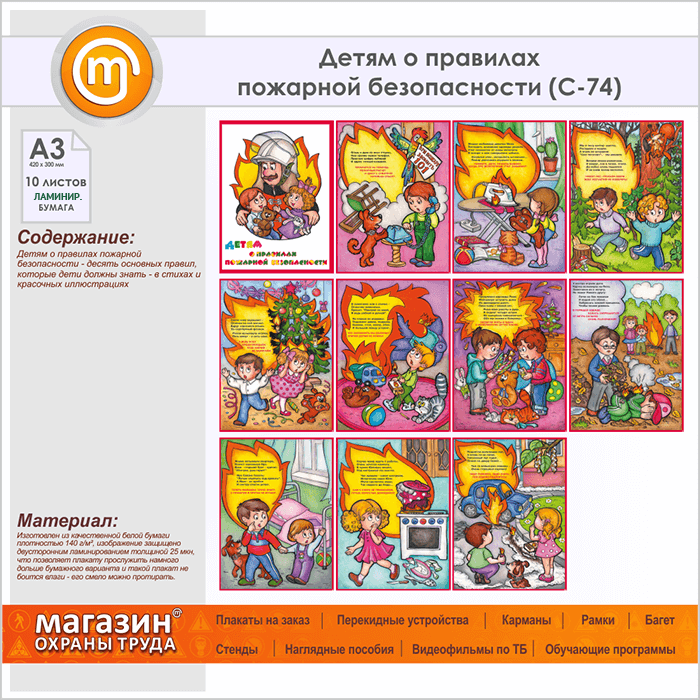Плакаты «Детям о правилах пожарной безопасности» (С-74, ламинированная бумага, А3, 10 листов) в Кызыле купить